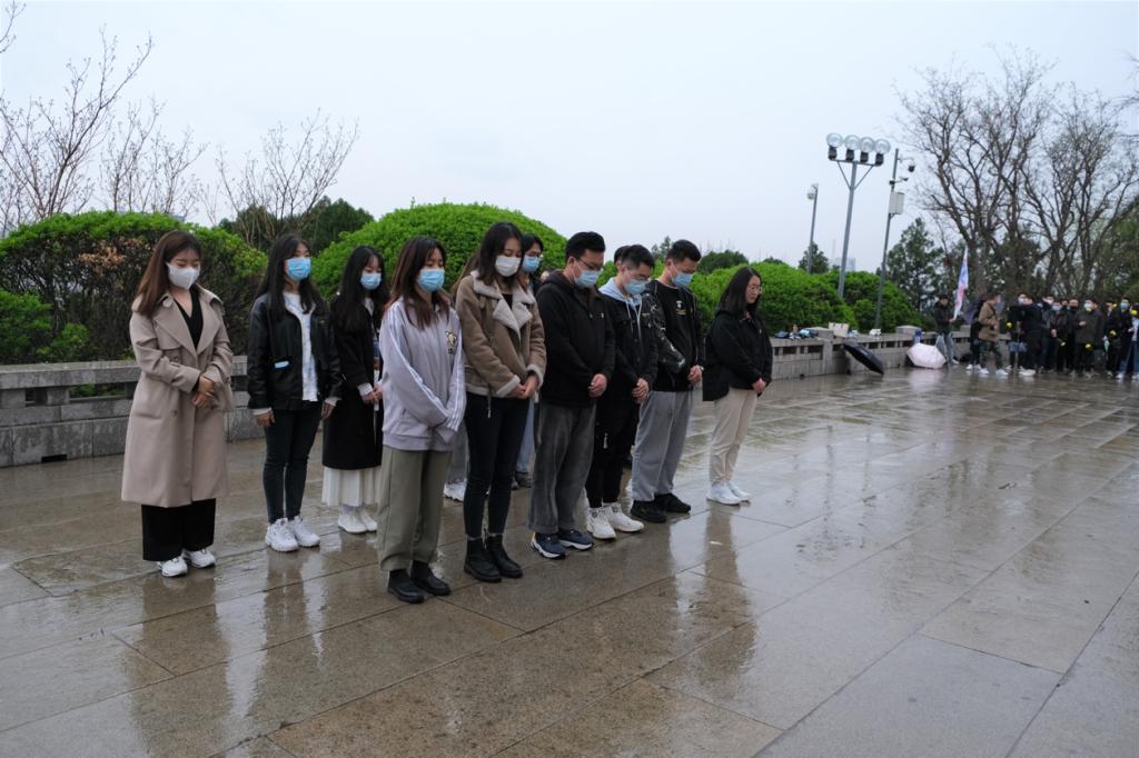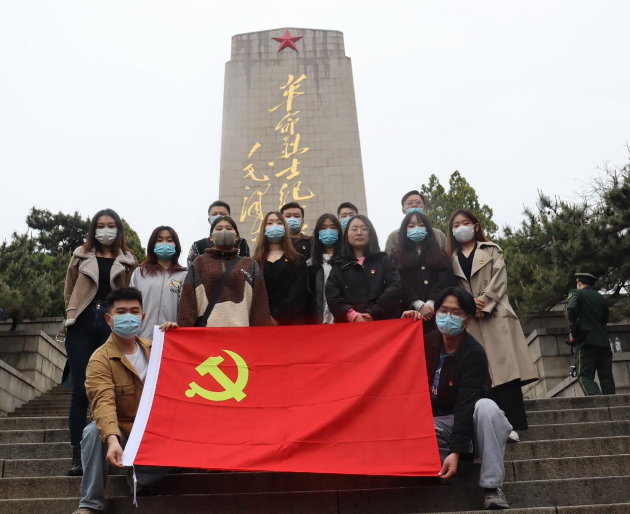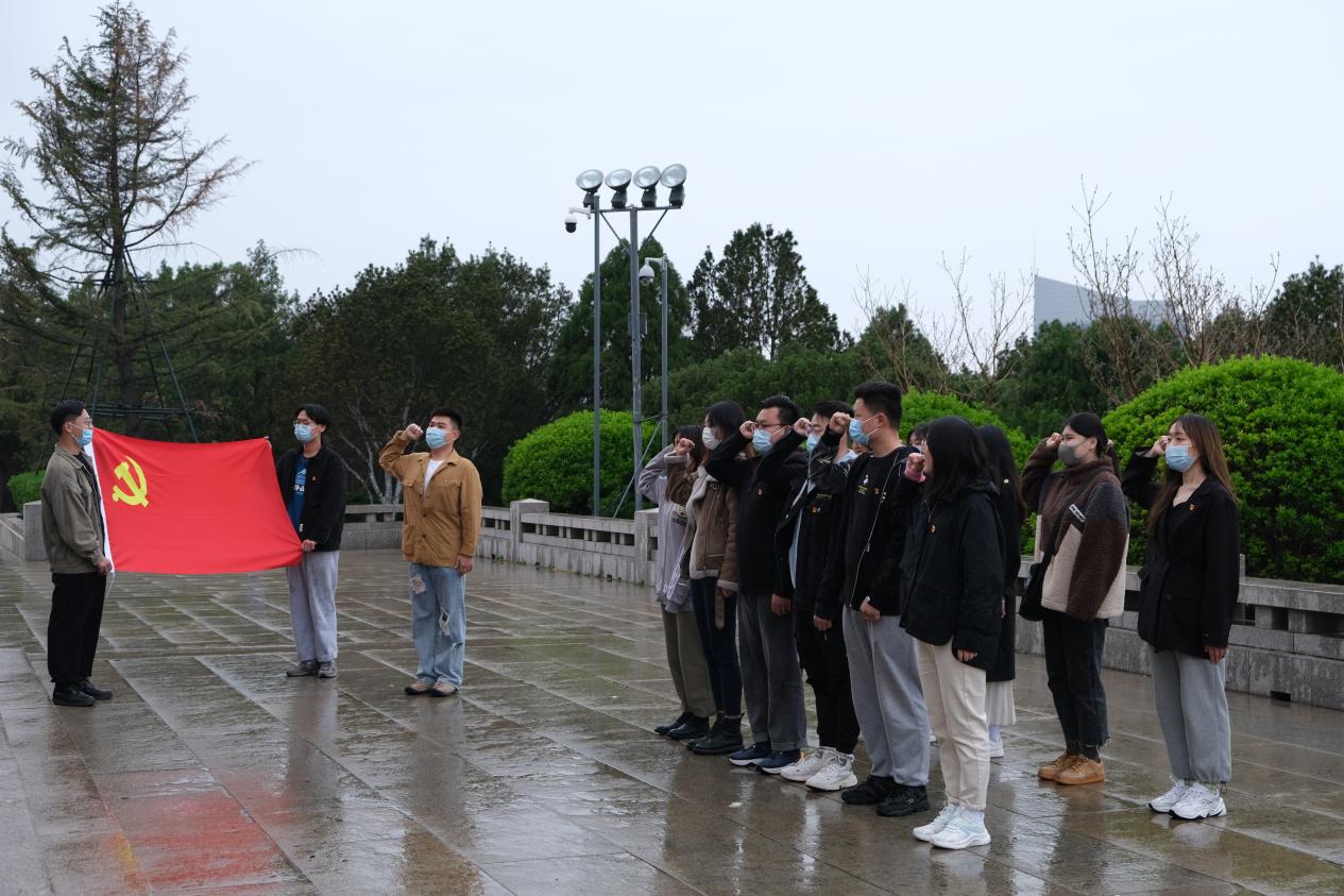 到达目的地后,在褚丁庆老师的带领下,学生党员向革命烈士敬献鲜花,并在烈士浮雕前集体鞠躬默哀一分钟。随后,由学生党员代表袁浩领誓,重温入党誓词,庄严地向党旗宣誓,掷地有声的誓言更加坚定了党员们不忘初心、牢记使命,为祖国人民奉献终身的理想与信念。