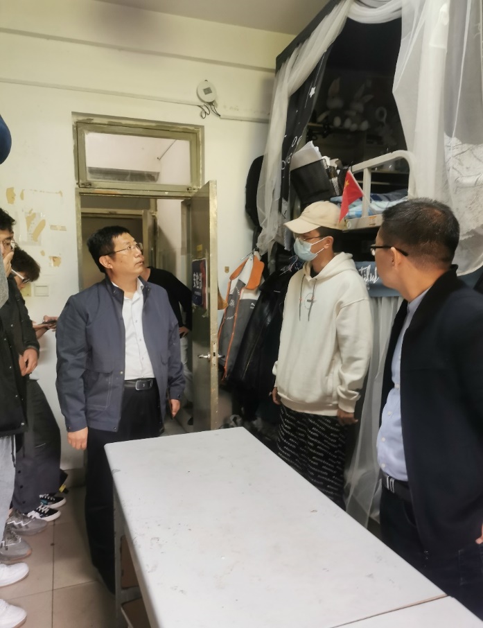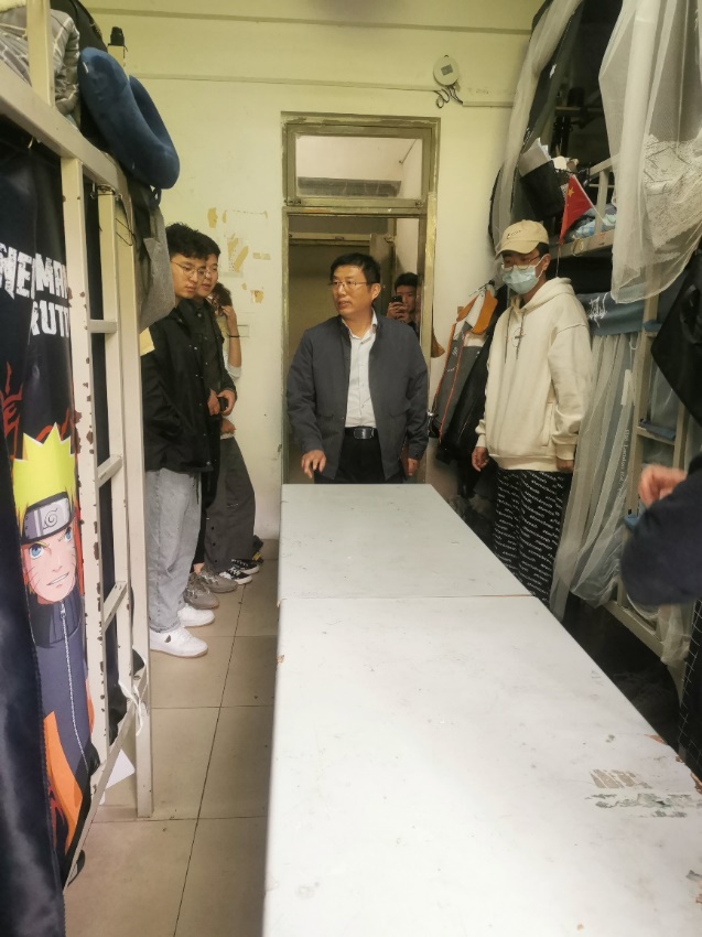 张东深先后来到17栋150、17栋264、17栋257、19栋A408几所宿舍,观看宿舍的环境和设备配置,询问空调暖气等设施是否能够正常运转,休息的空间是否便捷,与同学们交谈,听取同学们对宿舍和生活设施的意见,询问了学习、生活与心理情况,了解他们所学专业及作业情况,记下了同学们提出的问题。