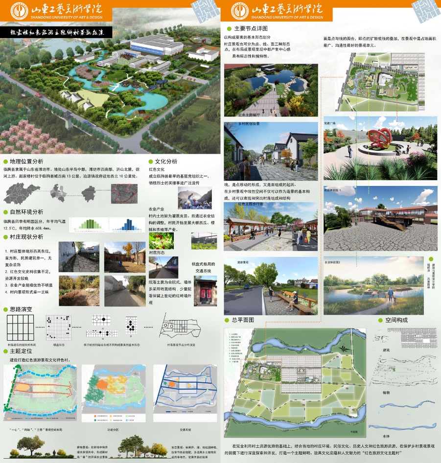 结合乡村振兴战略,乡村景观设计是近两年本专业学生毕业设计热门选题方向,指导教师在指导学生的过程中,会鼓励学生积极主动响应和对接国家政策,关注乡村规划与美丽乡村建设,通过设计实践让学生掌握解决乡村问题的设计思路和方法,助力美丽乡村建设。
