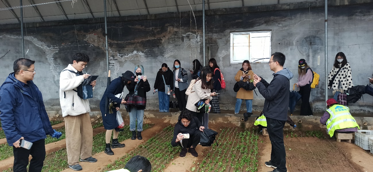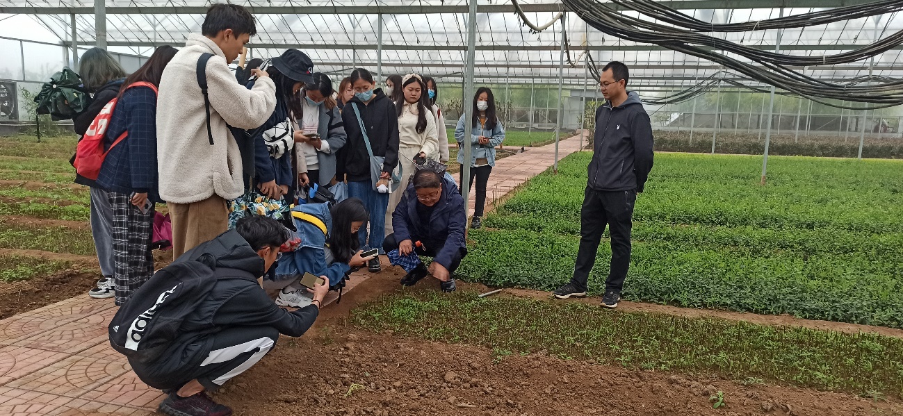 在公司的园林研发中心,张忠超详细给同学们介绍了研发中心的主要功能,一是针对学生专业学习的研学服务,二是精品苗木花卉的生产繁育,三是休闲景观服务,四是景松的苗木栽培养护,五是开心农场。随后,同学们深入参观了基地的苗木生产和休闲服务功能区,并饶有兴致的进行了有关体验。因为天气下雨的原因,公司其它几个基地和项目现场无法前往参观,有点遗憾。