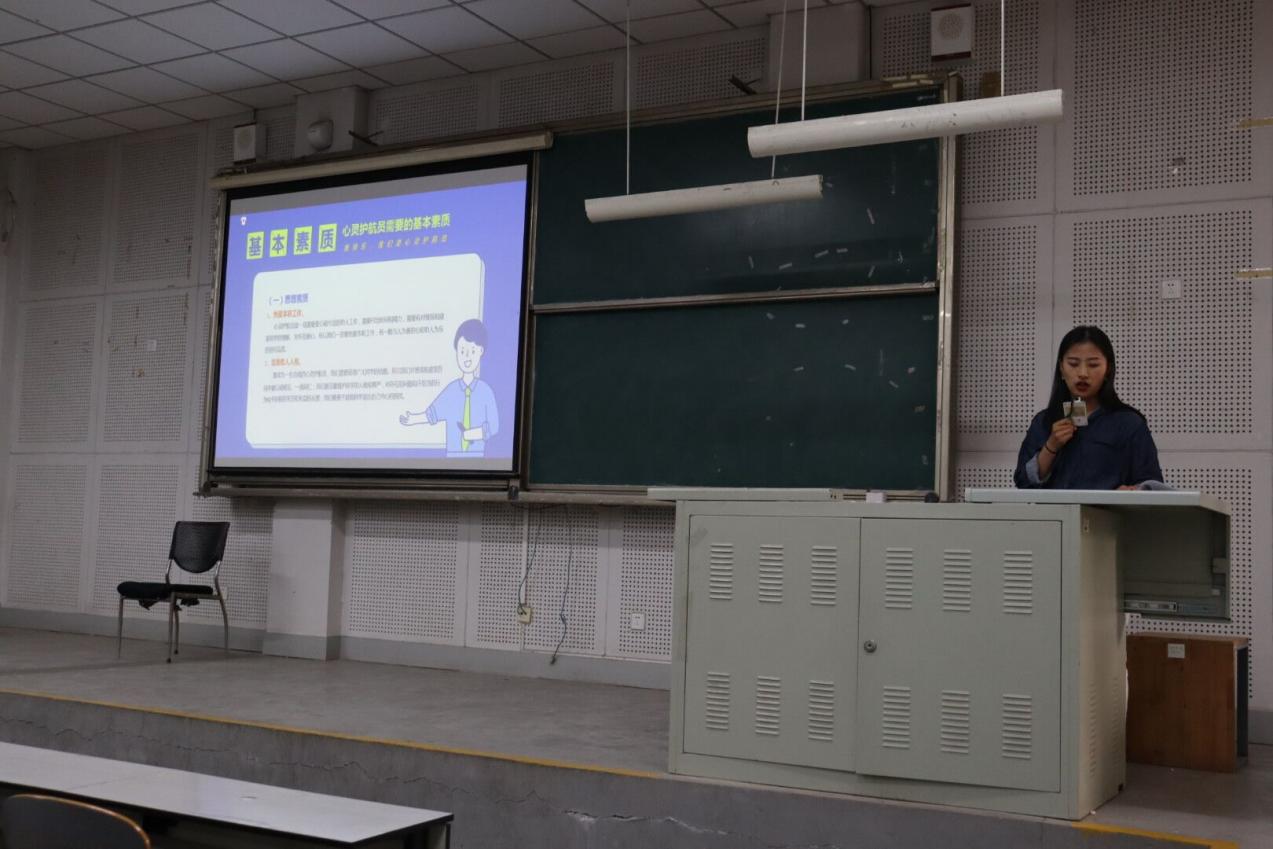 活动伊始,韩晓旭向同学们介绍了心灵护航员的使命与职责,明确了心灵护航员的定位。随后,她从心灵护航员需要的基本素质、工作内容、工作原则、个人成长四个方面向同学们介绍了心灵护航员应具备的思想素质、心理素质、专业素质和能力要求,明确了心灵护航员包括传播心理健康知识、传递心理健康信息、帮助心理困扰者和组织心理互助活动在内的工作内容。韩晓旭强调,坚持保密是最基本的原则,注重保护同学的隐私,并且要客观评估同学们的心理状态。最后,韩晓旭强调,心灵护航员要热爱本职工作、尊重他人;加强自身的思想素质和专业素质锻炼;注重个人成长,通过参加讲座等加强自身知识的学习,在实践活动中提升自己。