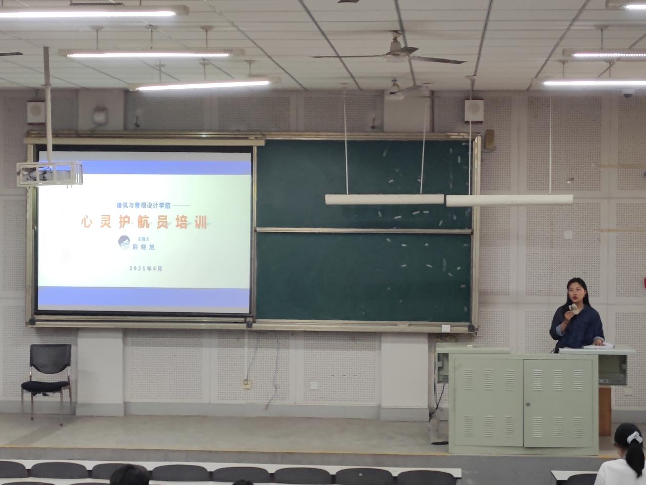 为加强我院心理健康教育工作,普及心理健康知识,激发学生关注心理健康意识,5月7日下午,建筑与景观设计学院在四合堂召开了心灵护航员培训会,培训会由辅导员韩晓旭主讲,学院五个年级的全体宿舍心灵护航员参加。