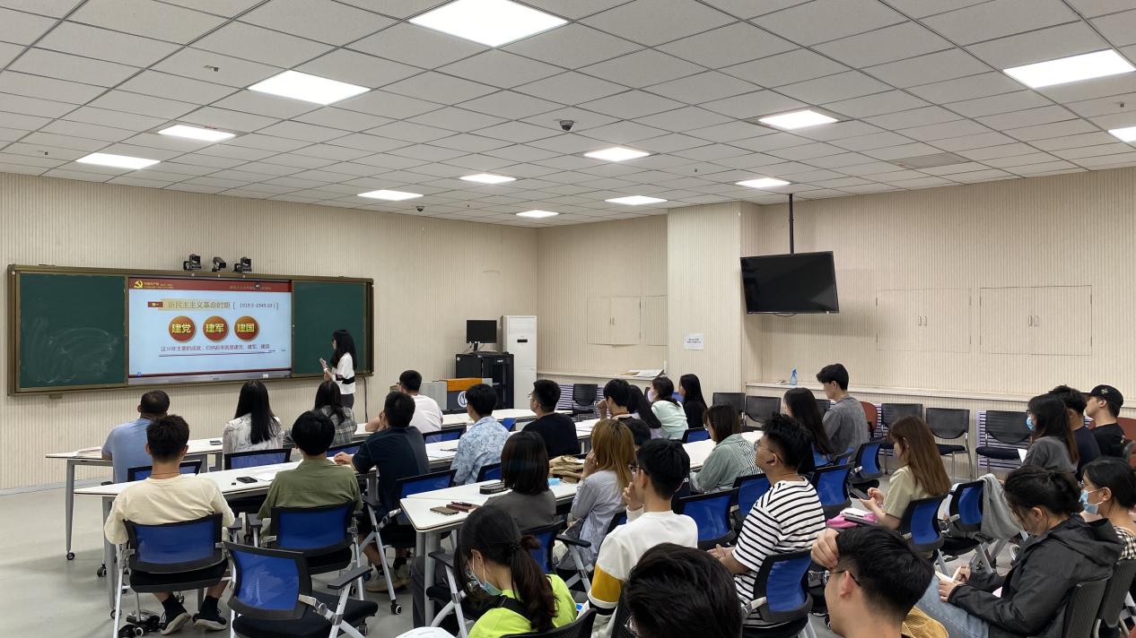 为深入开展党史学习教育,根据《建筑与景观设计学院学生党支部党史学习教育“五个一”工作方案》,建筑与景观设计学院学生党支部于5月19日在智慧教室组织开展“讲一次微党课”系列活动第二课,本次学习内容由学生党员胡温柔担任主讲,学生第一、二党支部书记褚丁庆、陈铁和辅导员韩晓旭、田亚洲及全体学生党员参加。