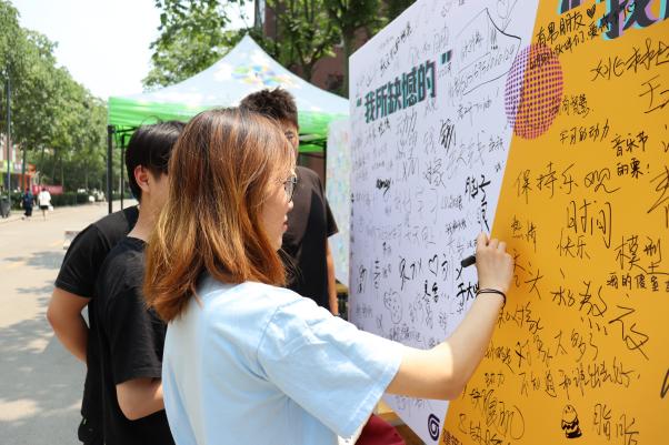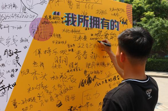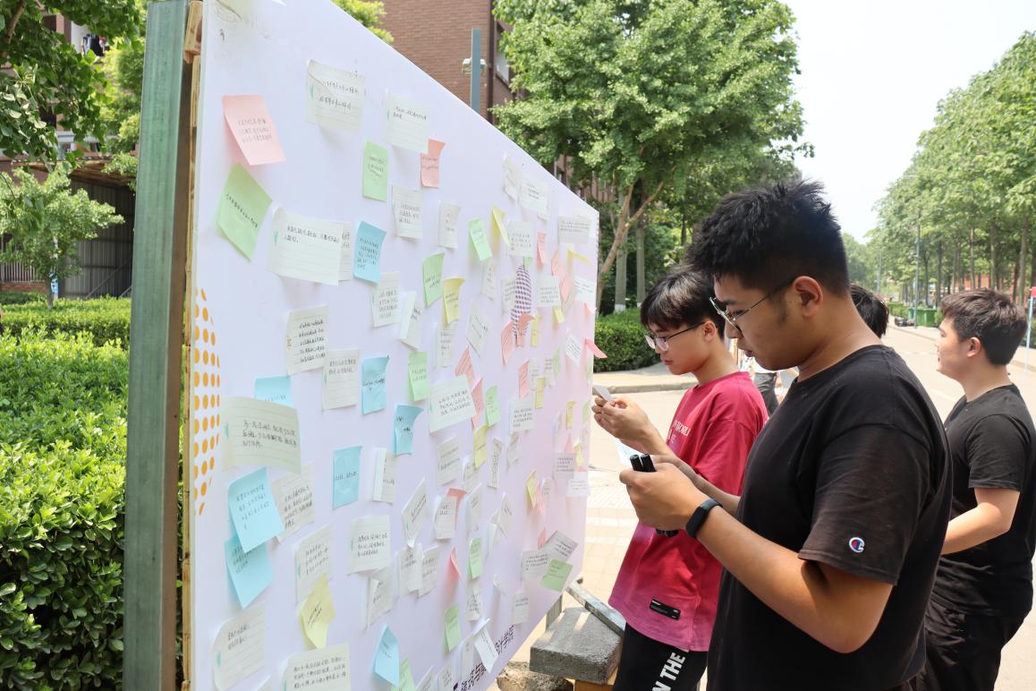 活动当天,同学们积极参与,气氛热烈。同学们根据自己的实际情况,在展板“我所拥有的”“我所缺憾的”相应区域写下对应的内容。随后在工作人员的引导下,从另一块展板上随机抽取一张心理健康语,来疏解、缓和自己刚刚写下的缺憾,健康语便利贴同学们带走留存。