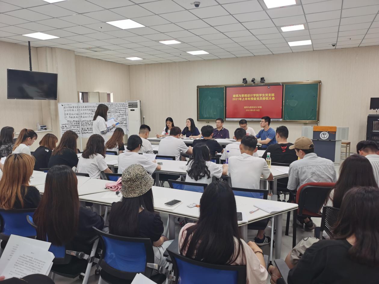 6月19日上午,建筑与景观设计学院学生党支部在学院智慧教室召开预备党员接收大会。建筑与景观设计学院党总支书记张东深、辅导员韩晓旭、田亚洲、入党介绍人、发展对象和全体学生党员参加。会议由学生第一党支部书记褚丁庆、学生第二党支部书记陈铁主持。