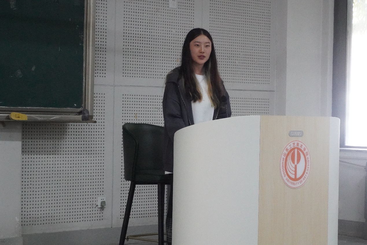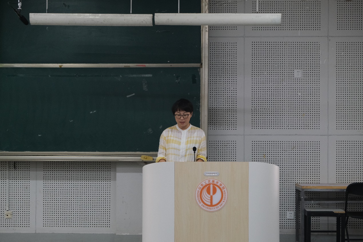 教师代表吕桂菊老师发言,希望新生们进入大学要发挥挖掘特长,培养各种兴趣;要注重专业上的培养和学习;最后她祝愿大家能够找到自我、找到真识、找到兴趣、找到未来。