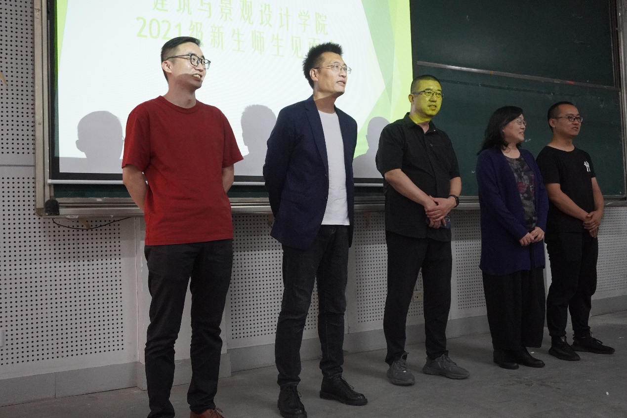 辅导员陈铁先后对室内教研室和景观教研室、建筑学教研室、风景园林教研室、行政岗位的老师们进行介绍。随着老师们登台,相关专业的同学们全体起立,一起鞠躬,齐声向老师们喊到“老师好”,掌声如雷贯耳,老师们和同学们的脸上都洋溢着幸福的笑容。