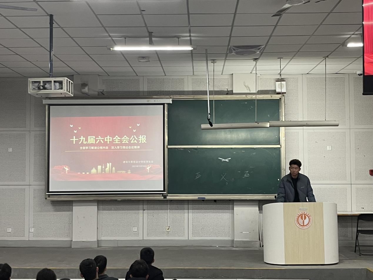 为积极响应号召,11月16日,建筑与景观设计学院学生会与青志联组织学习十九届六中全会精神。会上,学生会主席王承豪带领大家一起学习十九届六中全会公报内容,向各部门详细介绍并重点学习了中国共产党百年奋斗的重大成就和历史经验。