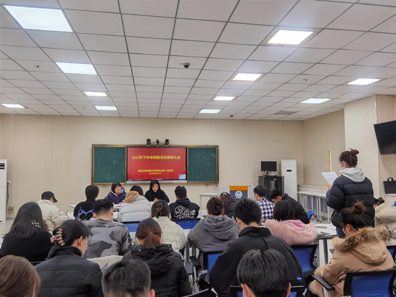 12月15日上午,建筑与景观设计学院学生党支部在学院智慧教室、多媒体教室召开预备党员接收大会。建筑与景观设计学院辅导员韩晓旭、田亚洲、申正宇、入党介绍人、发展对象和全体学生党员参加。会议由学生第一党支部书记褚丁庆、学生第二党支部书记陈铁主持。