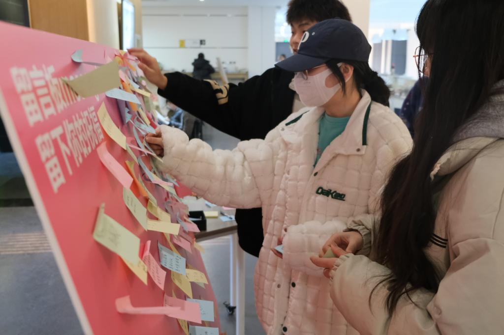 活动中,志愿者们提前准备好了书签与明信片,手绘祝福语,并把这些祝福语送到师哥师姐手中,传递了全院师生对考研学子的深情祝福,给他们舒缓压力的同时也希望他们成功“上岸”。接着,志愿者们还为考研学子提供热水,帮助他们打扫教室卫生,并且为其准备了一次性口罩、消毒湿巾,确保考生在备考期间的健康与安全。最后志愿者们合影留念,将温暖与祝福定格在了一张张的照片之中。