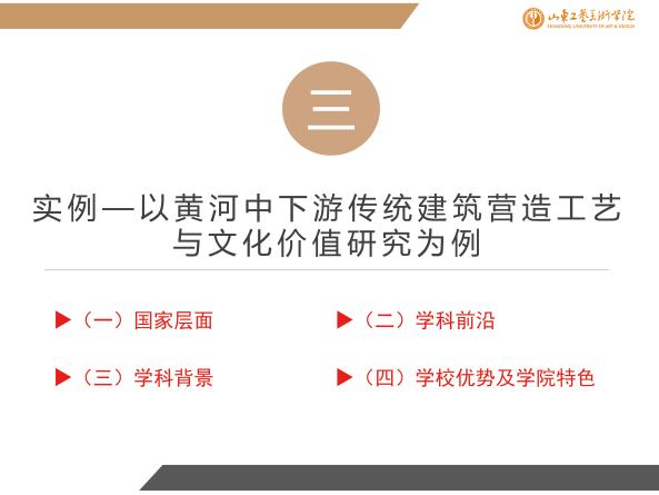 在“如何科研”这一要点上,胡英盛从科研的四个问题(“想不想干”、“能不能干”、“干什么”、“怎么干”)出发,精准地分析了科研课题申报与研究过程中的重要问题与注意事项。在此基础上,胡英盛以在研的国家社科项目艺术学基金课题为例,从“国家层面”、“学科前沿”、“学科背景”、“学校优势及学院特色”四个方面出发,深入探讨了科研方向、视角、内容、方法及相关学科等内容,为大家今后的科研工作提供了启发性建议和思考。
