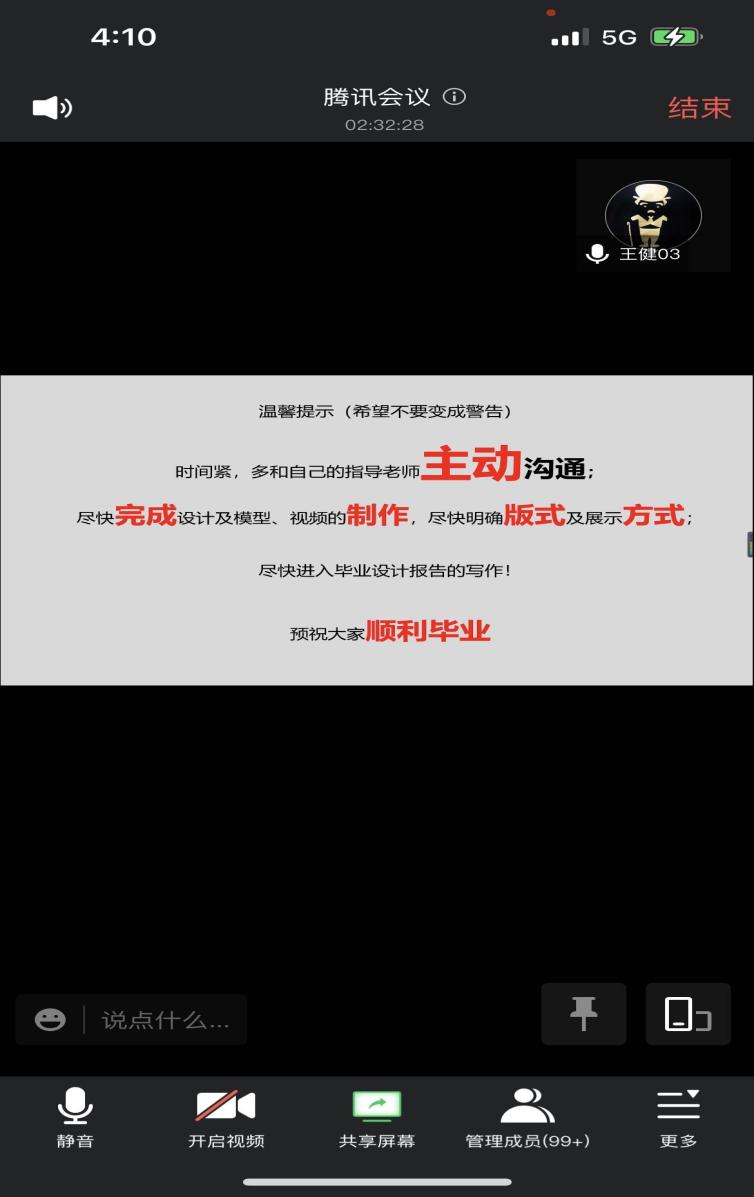 4月12日下午,建筑与景观设计学院于线上召开2022届毕业生年级大会。会议由党总支副书记姜华主持,学院副院长王健、2022届毕业生辅导员褚丁庆和全体毕业生参加。
