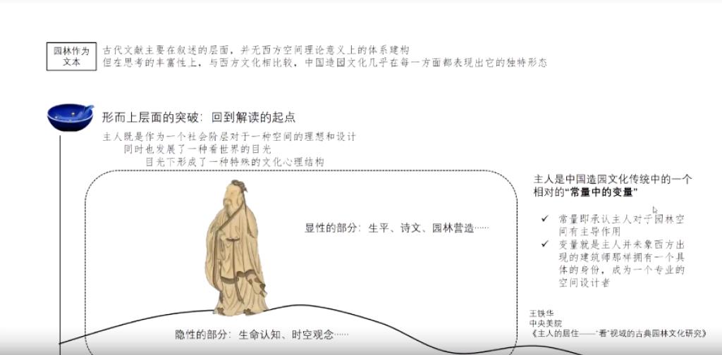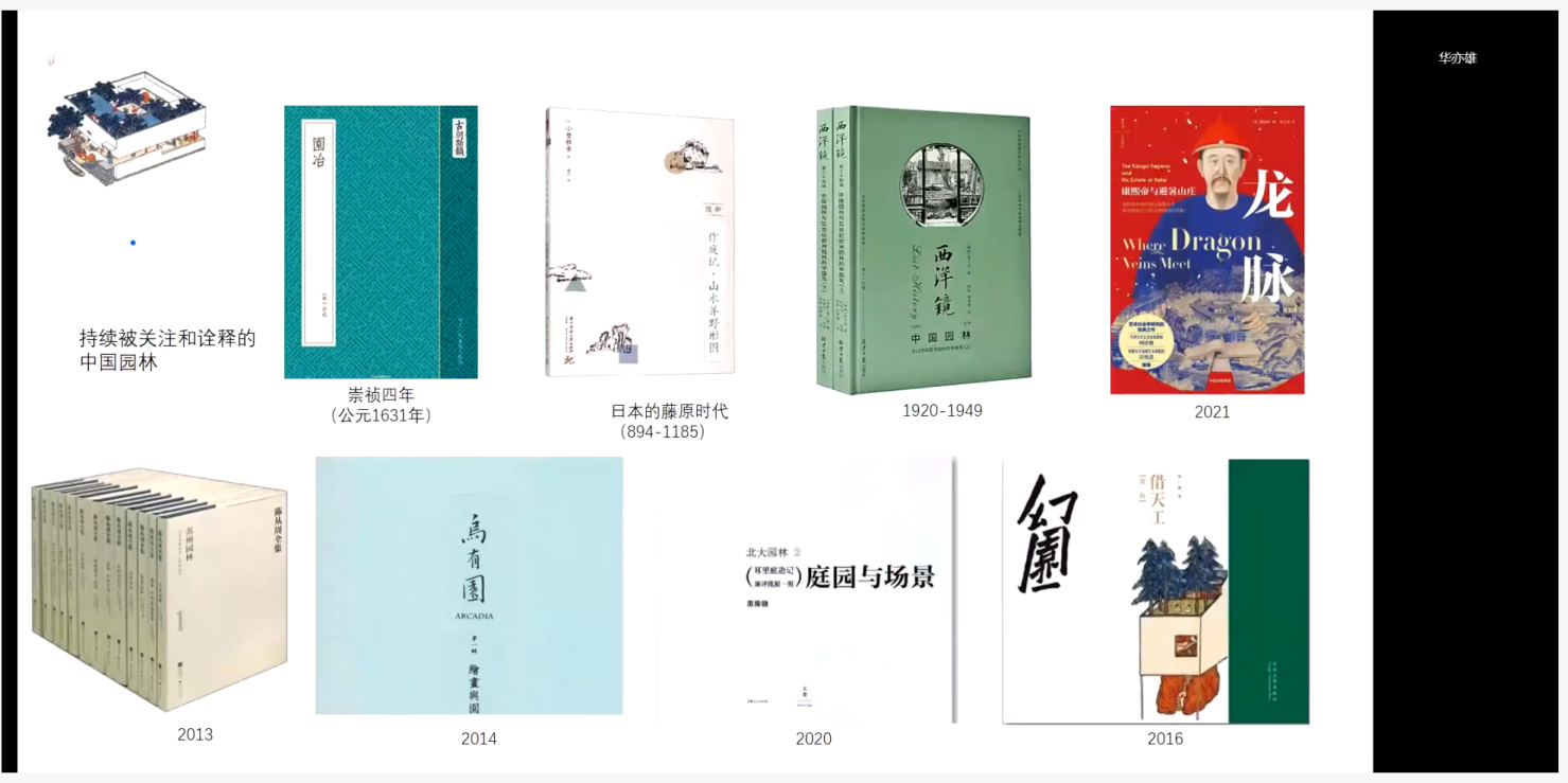 华亦雄教授结合自己的研究,介绍了当代园林研究方式的转变,并从园林主人的视角详细展开对园林的解读,并分析了园林主人的哲学思考;随后,她又从他人看的视角解读中国园林哲学思想和人文精神;最后,她从我们看的角度,详细分析了我们该如何看待当今的中国园林,以及中国古典园林思想对我们的启示和指导意义,并对这三个不同的视角对中国园林的形成逻辑进行了归纳。