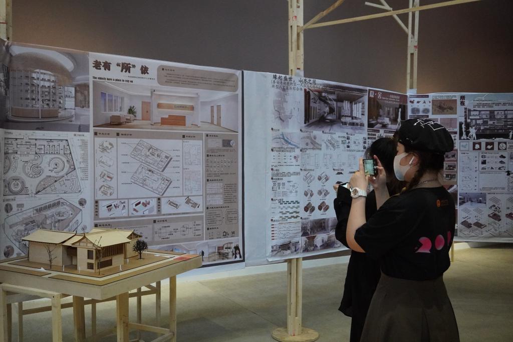 展览分为环境设计(室内、景观)、建筑学、城乡规划、风景园林四个专业五大板块,共计194件(套)毕业设计作品。作品内容涉及乡村振兴、城市更新、红色文化、绿色节能、生态环保等民生需求及社会热点。