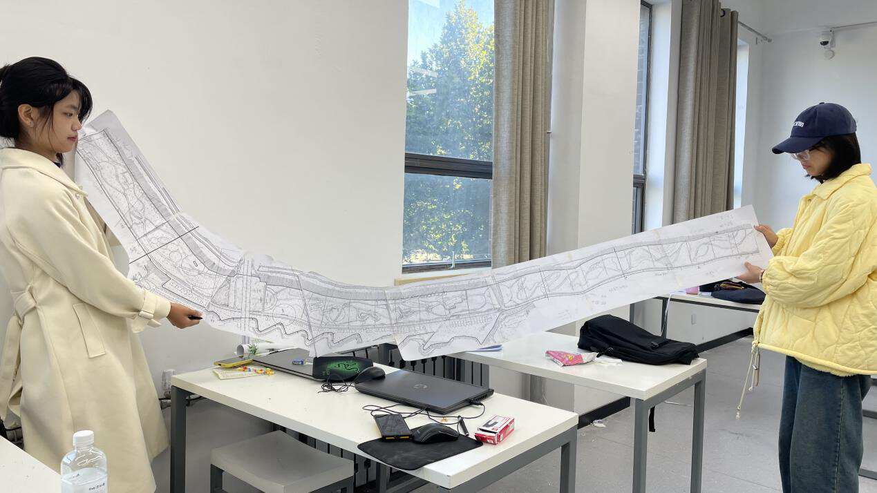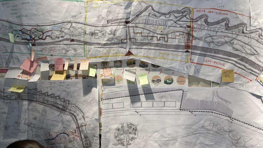 阶段4:课程设计与多维评图:设计基地为紧邻黄河的付家庄公园,面积35公顷,采用一对一评图、一对多评图、两个班老师相互评图,同学之间留言评图等方式;
