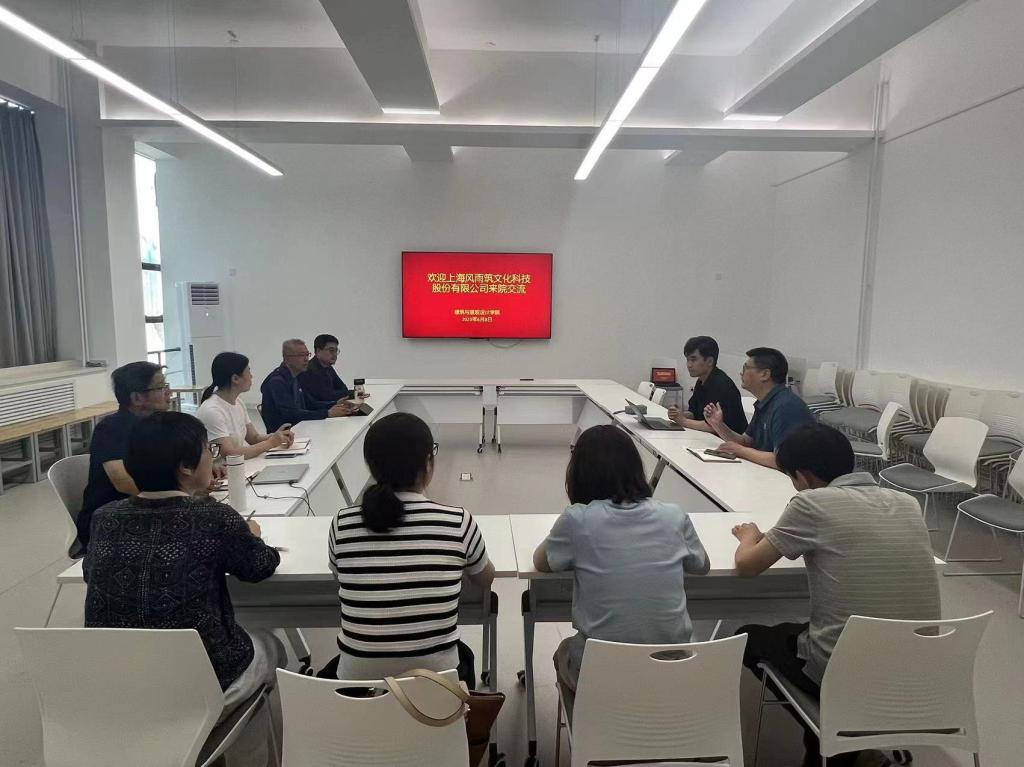 建筑与景观设计学院院长李文华对学院专业发展、课程建设、人才培养等方面进行了介绍。他表示,上海风语筑文化科技股份有限公司与学院的专业设置契合度较高,希望以此次走访为契机,期待双方在人才培养、科学研究、就业实践等方面开展可持续、深层次的合作。