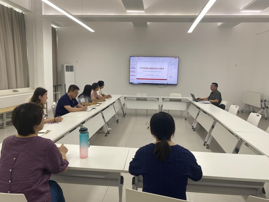 2023年6月27日上午,建筑与景观设计学院党总支书记姬升果以“牢牢把握主题教育的总要求--深入学习贯彻习近平新时代中国特色社会主义思想主题教育”为题,为学院全体党员干部讲授专题党课。