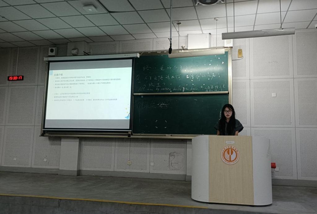 随后,2024届造型艺术学院毕业生李晓冉分享了自己的备考经验。她提到,备考中要明确目标,了解考试题型,结合看网课、刷题、模考等方式巩固知识点,并向同学们推荐了自己备考中有效的行测、申论的、习题等参考资料。接着,她提到备考笔试过程中就要注意面试内容的积累,做好日常练习,在考场上要做好心态管理,并建议学生们不要为了上岸而选择岗位,要根据自己的未来规划和预期的生活水平选择自己喜欢的岗位。
