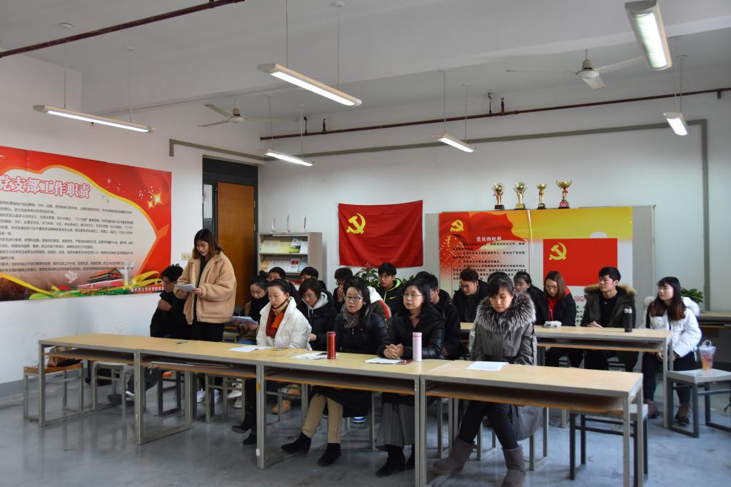 2018年12月14日,现代手工艺术学院学生党支部在教学楼415党员活动室召开了中共预备党员接收大会,会议由现代手工艺术学院学生党支部书记周茂同主持。现代手工艺术学院党总支副书记王国燕、入党介绍人、发展对象和全体学生党员参加。