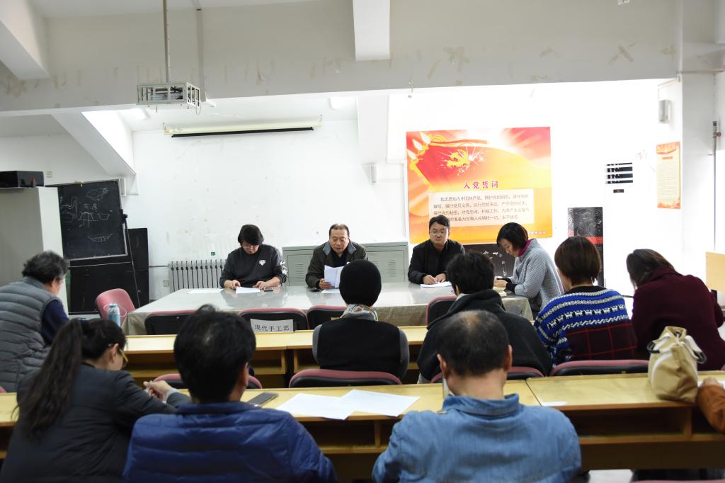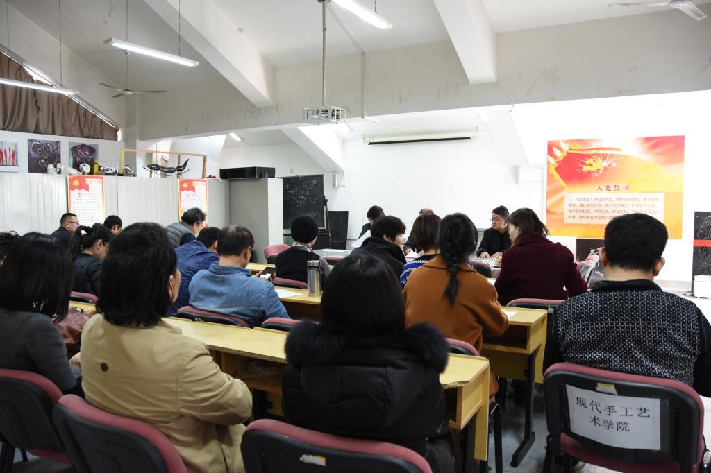 2018年11月22日,现代手工艺术学院召开全体教职工大会。院长赵进、党总支书记金伟、副院长宋处岭、副书记王国燕和全体教职工参加会议。院长赵进主持会议。