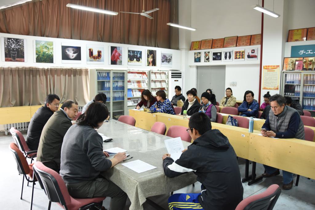 首先由新进教师徐强和陈强汇报入职一年所做工作,全体教职工对新进教师进行考核打分。接着,赵进院长对学院举办的“传承与创新”师生校友座谈会、“大器养成”历届优秀收藏作品展和承办的“丁永源教授工艺美术教研回顾”师生校友座谈会等校庆45周年系列学术活动进行了总结,对全体教职工不辞辛苦、加班加点完成布展和学术活动筹备等工作进行了肯定,系列学术活动圆满完成、成效显著。随后,赵院长简单进行了下学期教学工作安排。因2018级新生实行学分制涉及到选课问题,要求各专业老师提前进行专业课程录像和课程计划安排。教学秘书邵世琦对教学系统的使用情况进行了详细说明,希望各位老师熟练使用教务系统,提升教务管理效能。