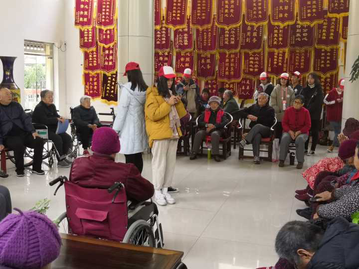 立冬初到,天气转凉,2018年11月11日下午,爱心社部长倪阳,带领爱心社全体干事和其他爱心同学,来到南市舒心港湾重骑颐养中心,进行关爱老人的公益活动。