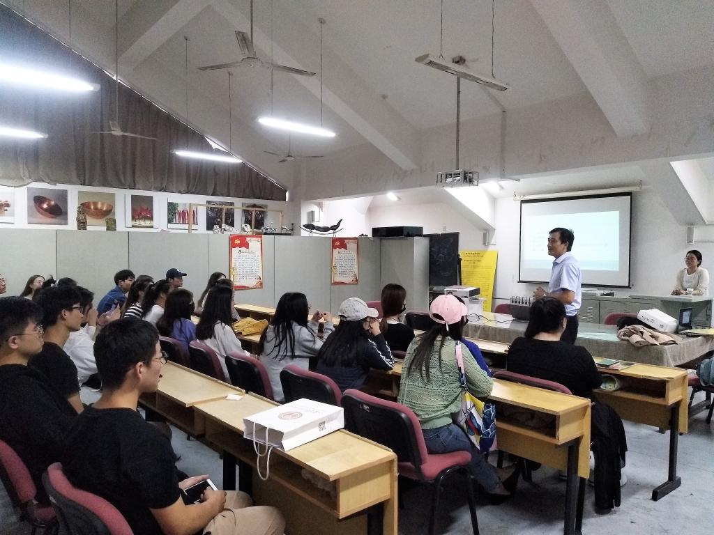 现代手工艺术学院于2018年9月21日下午三点,在长清校区综合教学楼B444多媒体教室举办江苏省金太阳纺织科技有限公司招聘会。江苏省金太阳纺织有限公司的人事部总管和设计研究所陈所长代表金太阳有限公司来到我院招聘毕业生。辅导员周茂同组织了我院纤维染织专业大三、大四学生参加此次招聘会。