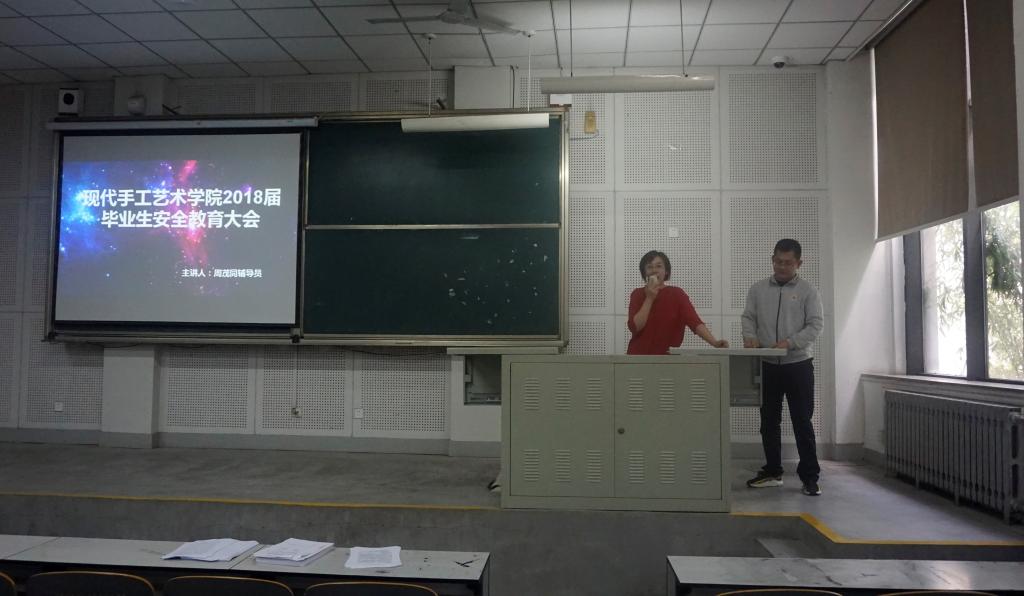 为了进一步提高毕业生安全意识,帮助毕业生完成离校前各项工作,确保毕业生安全文明离校,5月22日,现代手工艺术学院在三合堂召开2018届毕业生安全教育大会。大会由现代手工艺术学院2018届毕业生辅导员周茂同主持,党总支金伟书记,王国燕副书记及现代手工艺术学院2018届全体毕业生参加了本次大会。
