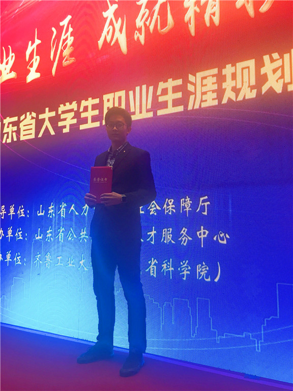 10月23日至27日,2017年全省高校毕业生就业指导人员梯队建设培训班暨大学生职业生涯规划成果展演活动在齐鲁工业大学长清校区举办。威尼斯官网现代手工艺术学院学生张万豪在全省大学生职业生涯规划成果展演活动中获得三等奖。