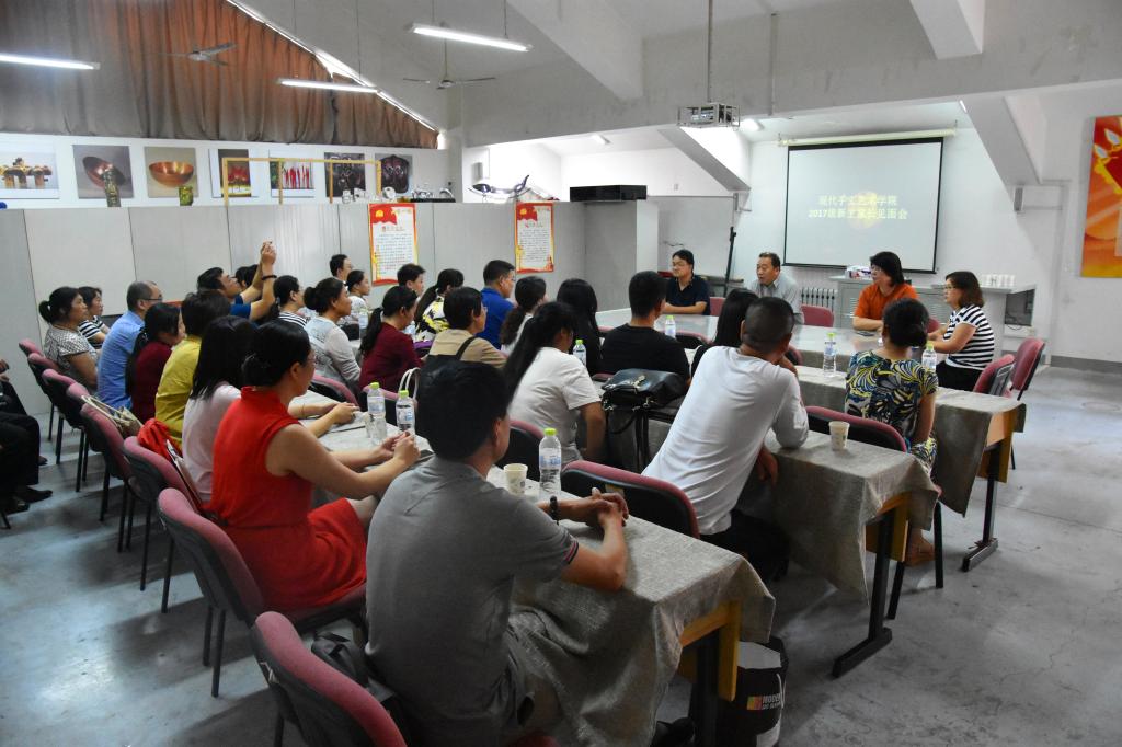 为加强与新生家长的沟通,引导新生尽快适应大学生活,2017年9月8日,下午2:00,现代手工艺术学院于四楼多媒体教室b444召开了2017级新生家长见面会。我院院长赵进、党总支书记金伟、副院长宋处岭、办公室主任姬升果出席了本次见面会,见面会由2017级新生辅导员李清华主持。