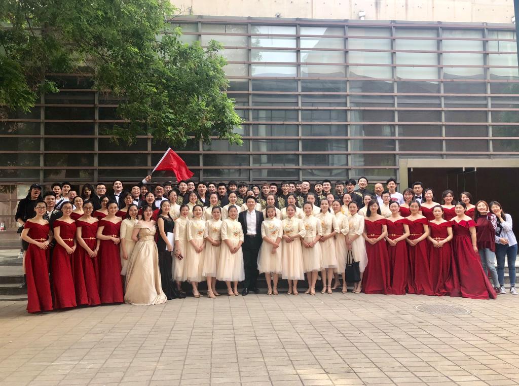 我院合唱队由53名同学和25名老师组成,赛前做了充分准备。在选曲上,我院选择了激情澎湃、铿锵有力的《黄河大合唱》作为比赛曲目;在排练中,我们邀请专门音乐教师指导大家练习,全体成员以积极的态度和饱满的热情投入到本次大合唱排练中,从不熟悉歌词到牢记每一段旋律,参赛师生付出了大量时间和精力;服装方面,女教师们身着修长精致的礼服,高贵而典雅,女同学身着米黄色连衣裙,端庄而大方,男同学和男老师则身着黑色西装,稳重而干练。