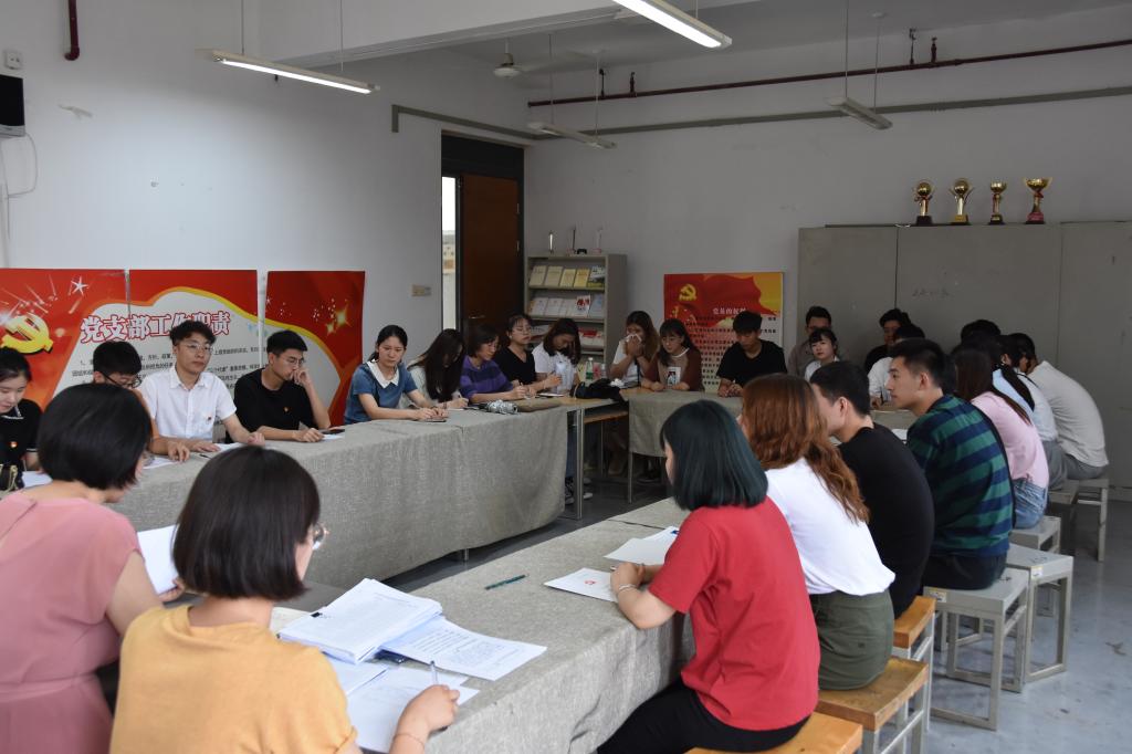 2019年6月18日,现代手工艺术学院学生党支部在教学楼415党员活动室召开党员大会,讨论接受王丹妮等7名发展对象为中共预备党员。会议由现代手工艺术学院学生党支部副书记刘化真主持,入党介绍人、发展对象和全体学生党员参会,现代手工艺术学院党总支书记金伟、副书记王国燕列席会议。