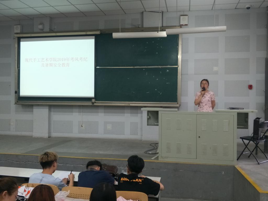 7月5日下午,现代手工艺术学院在八合堂分别召开了2017、2018级考风考纪暨暑假安全教育大会,学院副书记王国燕和辅导员刘化真主持,学院2017、2018级全体同学参加。