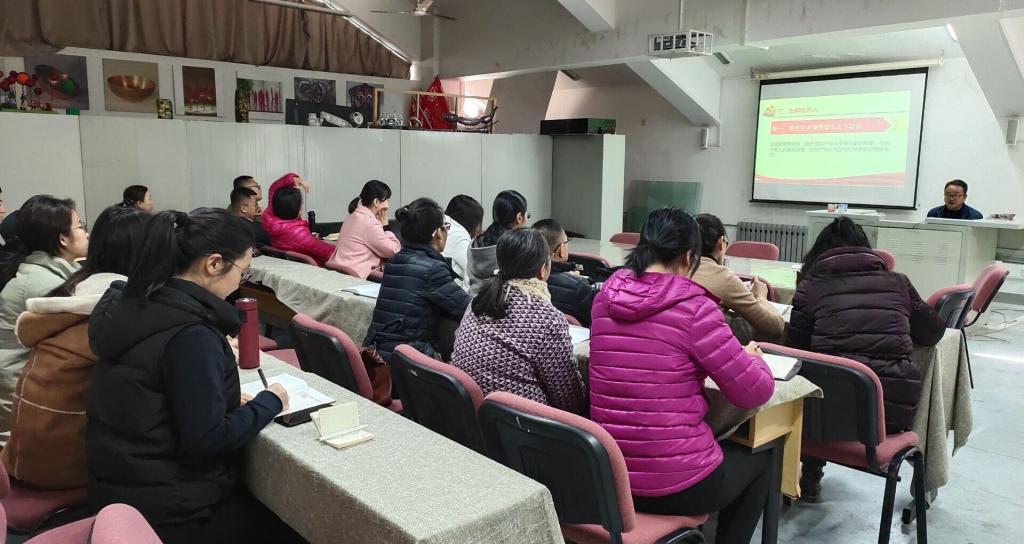 11月20日,现代手工艺术学院党总支书记金伟在学院多媒体教室为全体师生党员上《培养什么人、怎样培养人、为谁培养人》主题党课。
