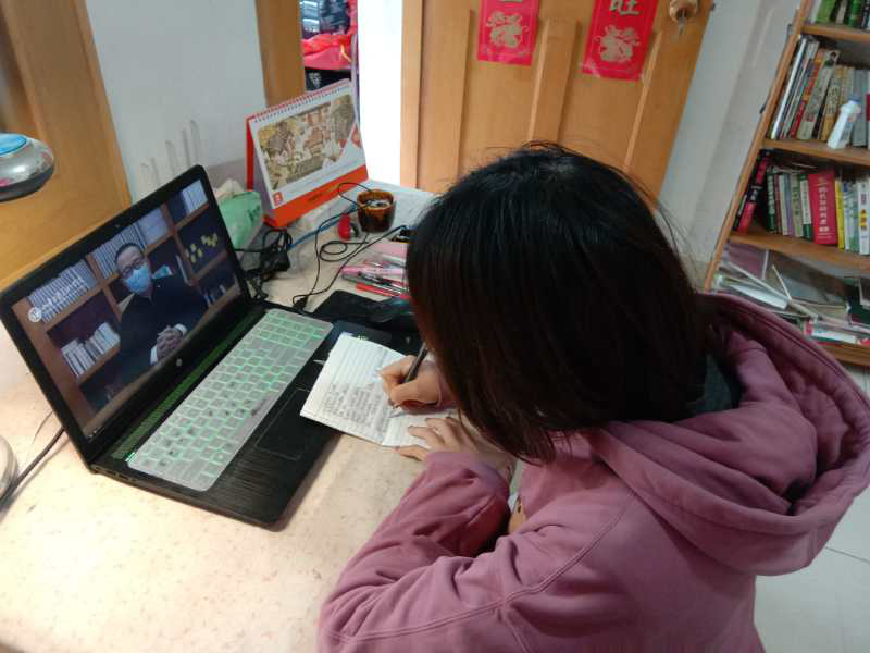2020新年的钟声敲响时,迎来的不是万家灯火,而是阻击新冠疫情的战前准备。喧嚣的城市被疫情覆盖,变得安静寂然,使得今年的开学方式有些许的特殊,我们用网络直播的方式开启了新学期的“开学第一课”,作为一名学生,我们要与奋斗在前线的同胞们并肩作战,我们的任务就是在这段时间里在家认真听课,努力学习。毛主席曾说过“情况是在不断的变化,要使自己的思想适应新的情况,就得学习。”停课不停学就是我们对抗击这次疫情最大的支持。线上云互动,隔屏不隔爱。我相信,待到春暖花开之时,我们终将回归校园。