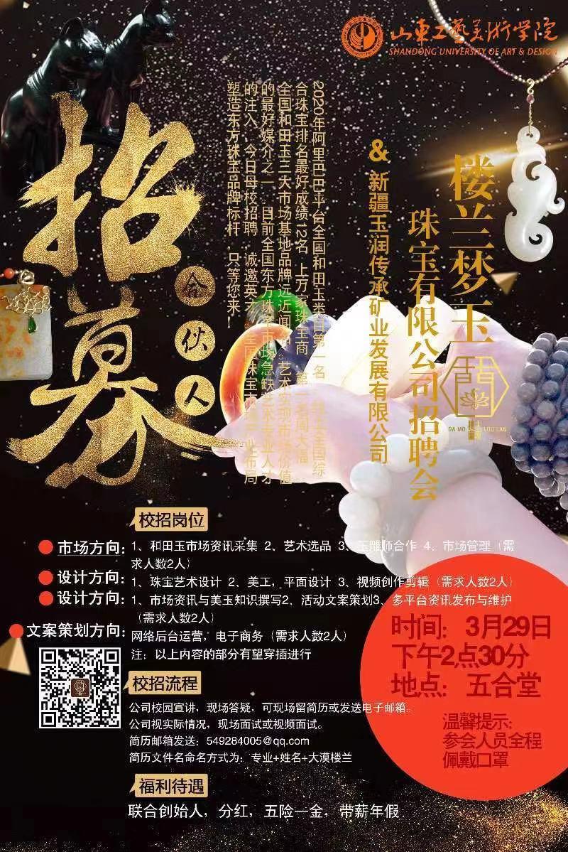 为精准服务2021届毕业生,满足学生的就业需求,在学校团委、学生处的支持下,现代手工艺术学院邀请了“楼兰梦玉珠宝有限公司”来我院开展就业宣讲会。本次宣讲会于2021年3月29日14:30在五合堂举办,现代手工艺术学院2017级、2018级学生积极参会。