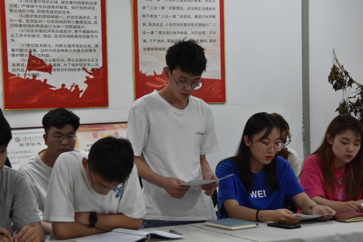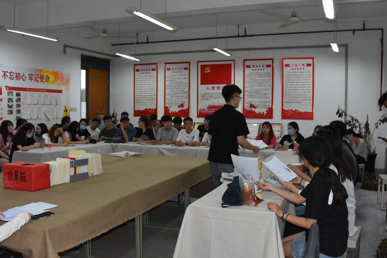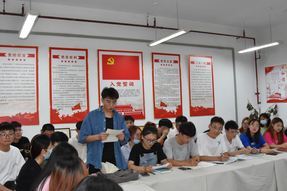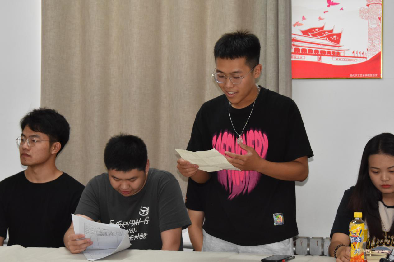 在建党百年来临之际,为了进一步加强基层党组织建设,吸纳更多优秀青年加入党组织,壮大党员队伍,现代手工艺术学院学生党支部于2021年6月18日在教学楼415党员活动室召开党员大会,讨论接收王冠、张凯、武靖淋、谭凛、郭家兴、张长兴、冯亚岗、张茹、陈明远、李文龙、刘宇川、乐炜12位同志为中共预备党员。会议由现代手工艺术学院学生党支部书记田媛主持,入党介绍人、发展对象和全体学生党员参会。