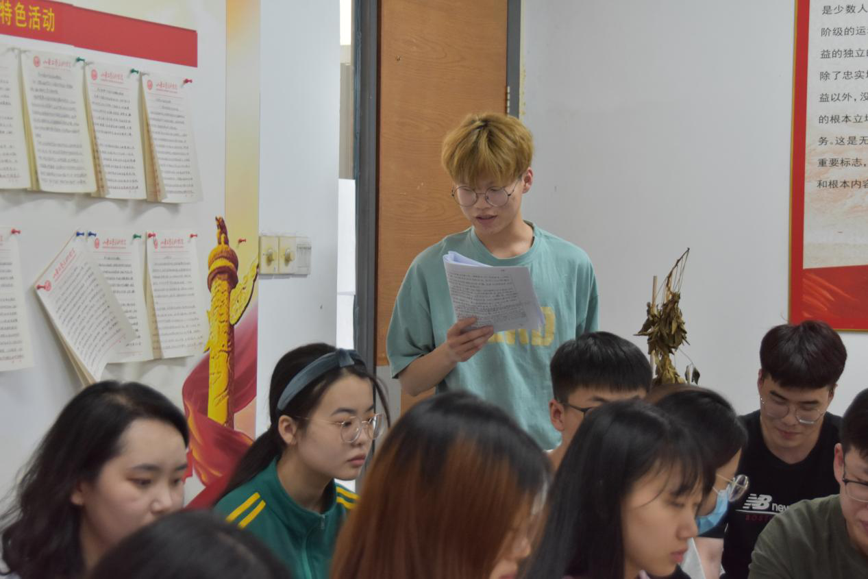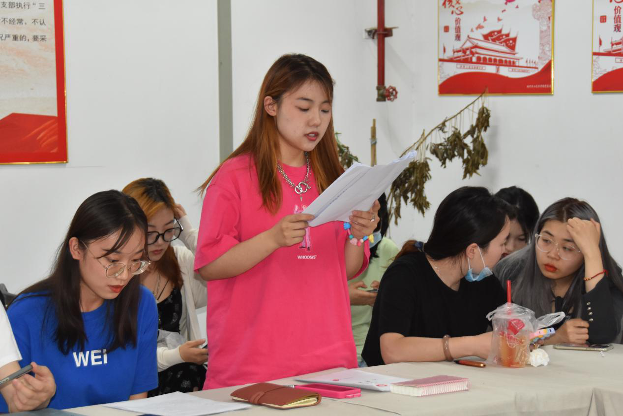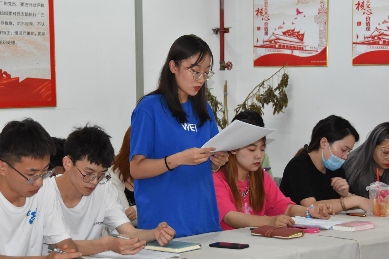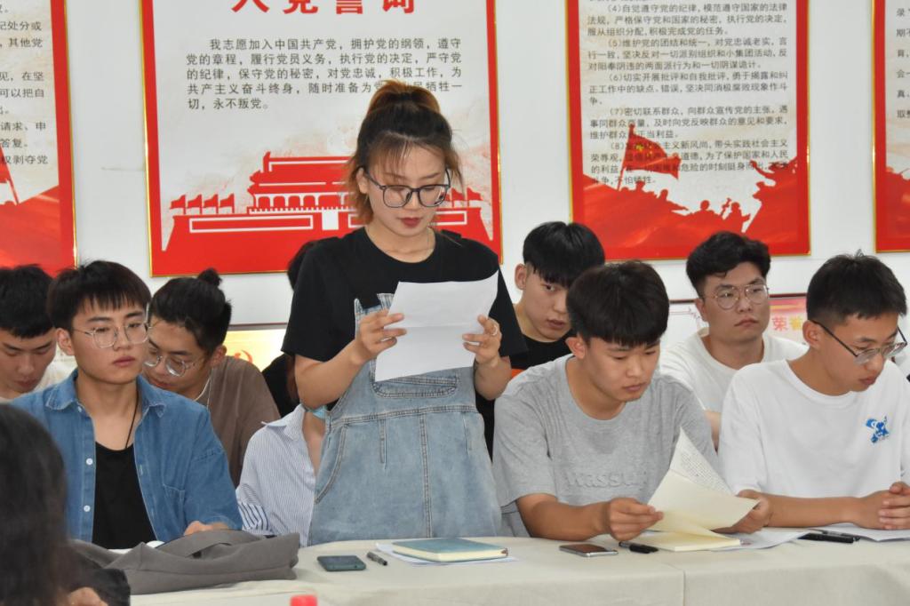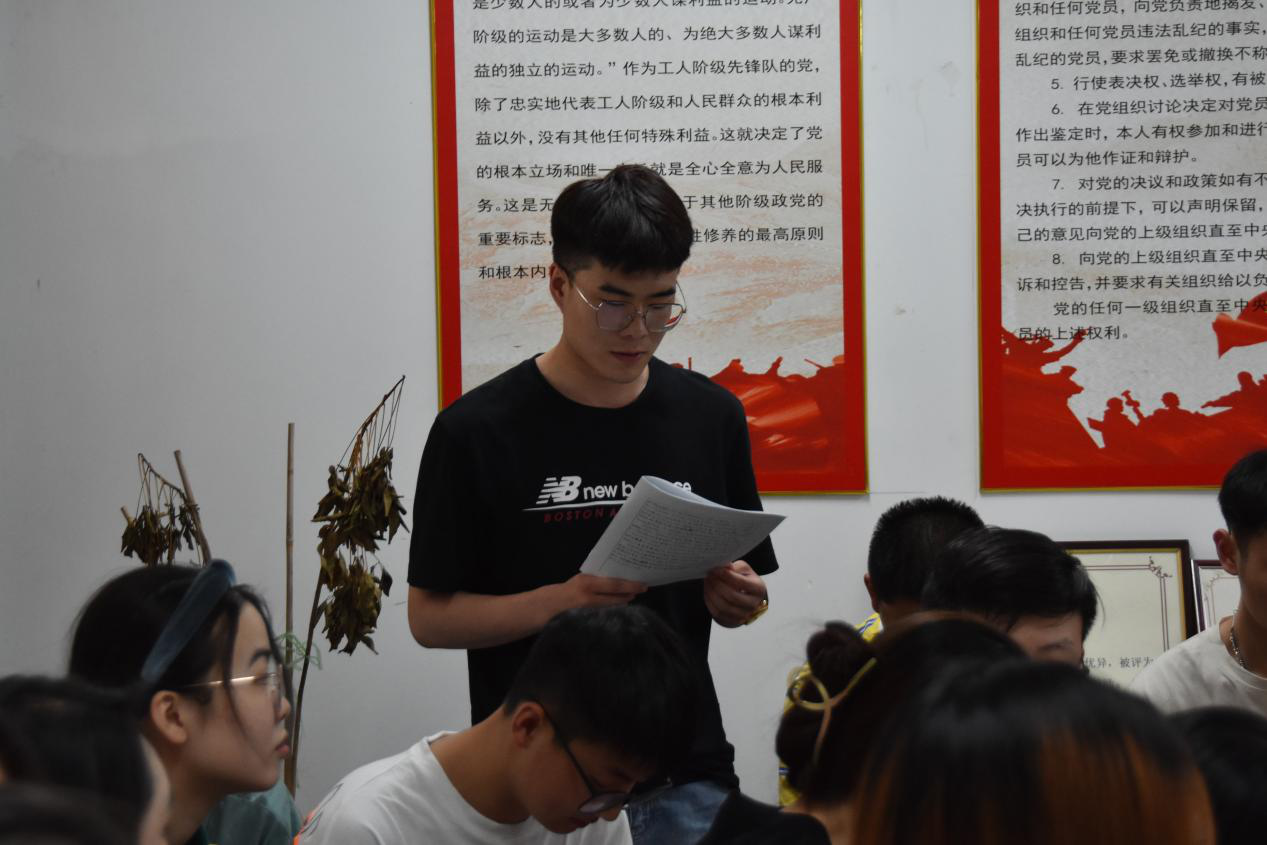 第三项:学生党支部宣传委员冯璟同志代表支部委员会向党员大会报告对12位发展对象的政治审查、征求党员和群众意见等情况。