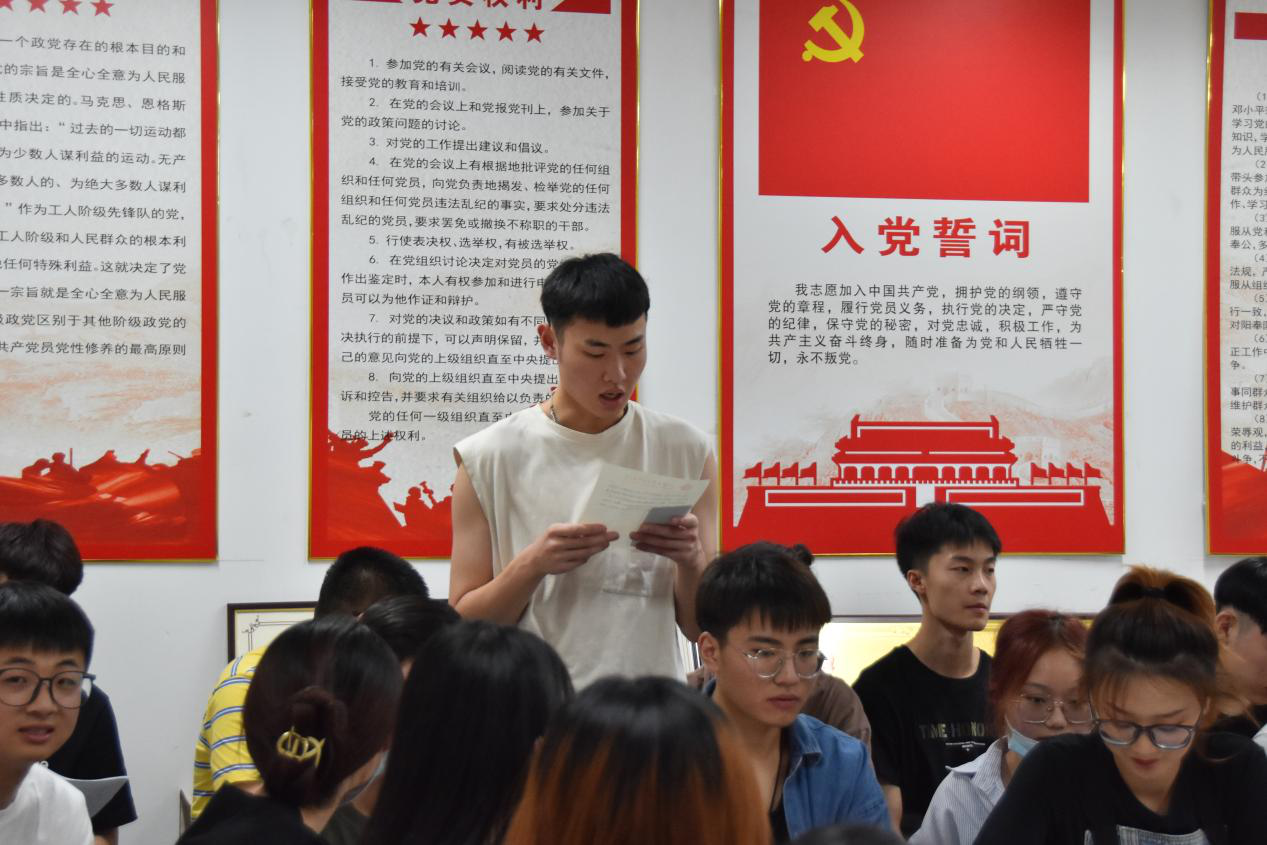 第六项:新党员作表态发言。各位新党员表示能够在中国共产党百年华诞之际成为一名预备党员而感到非常光荣,今后一定时刻谨记作为一名共产党员的责任,坚定理想信念,充分发挥先锋模范带头作用,不辜负党组织的期望和培养。