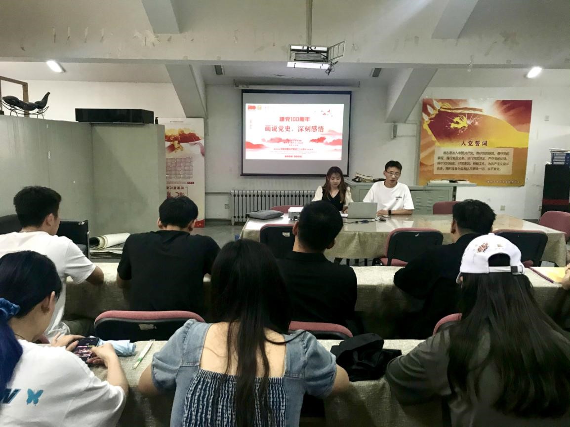为了庆祝建党100周年,弘扬红色革命精神,发扬党的光荣历史,2021年7月1日,现代手工艺术学院党史学习教育宣讲团在B444多媒体教室开展题为“画说党史,深刻感悟”的专题宣讲。本次宣讲会由宣讲团成员张凯、武靖淋主讲,学院学生党员、入党积极分子参加。