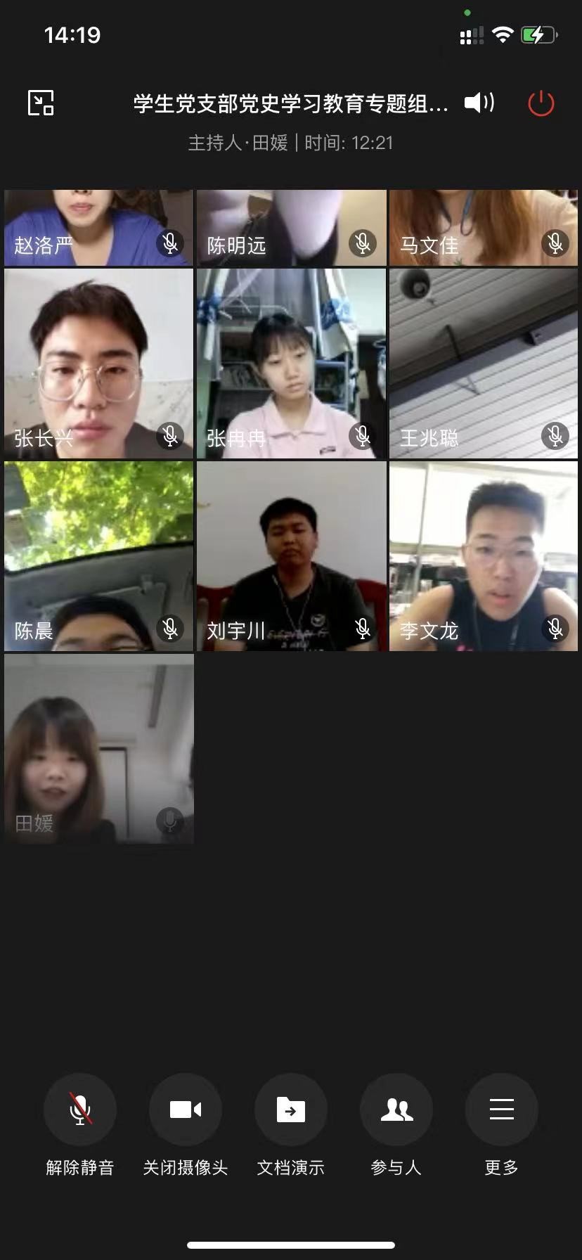 2021年7月9日下午2:00,现代手工艺术学院学生党支部通过线上召开党史学习教育专题组织生活会。学院党总支副书记王国燕指导会议,学院学生党支部书记田媛主持会议,学生党支部全体党员参加会议。