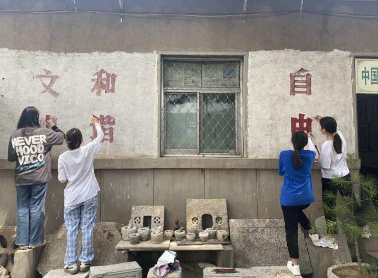 通过采访获取了丰富的红色知识,团队成员开会讨论研究实践内容,最终决定利用专业特长文化上墙,实施博物馆园区环境景观提升计划。