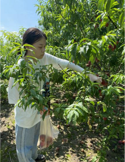 在这里,实践队员实地考察了肥桃的生长环境,更加详细地了解了肥桃和其他品种桃的区别,同时也体会到了劳动的价值与丰收的喜悦。