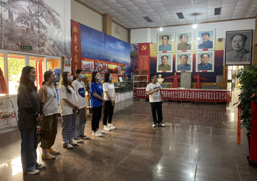 实践团队于7月4日前往泰安毛公山红色文化博物馆开展实地考察调研,参观历史文物,认真听取博物馆负责人讲解,并悉心做好记录。团队成员共参观了毛泽东主席生平事迹图片展、百名将军书画展、八路军115师在肥城展、山东西区人民抗敌自卫团展、近现代革命文物展、解放军退役武器装备展、“东方红·中国梦”红色文化剪纸作品展、肥城民俗文物展八个项目,由博物馆负责人周光辉同志进行全程讲解,再与实地最佳的观赏效果相结合,让团队成员们徜徉在泰安毛公山红色文化博物馆灿烂的历史文明中,切身感受到了当地悠久的历史文化底蕴。