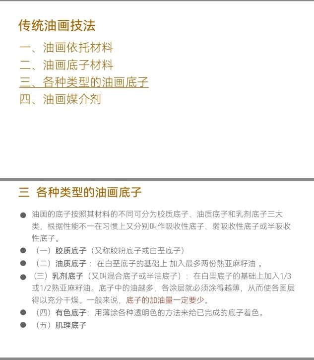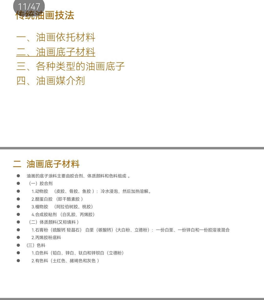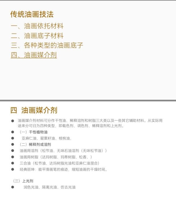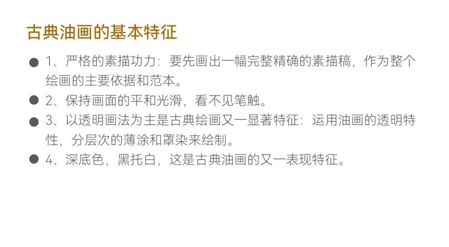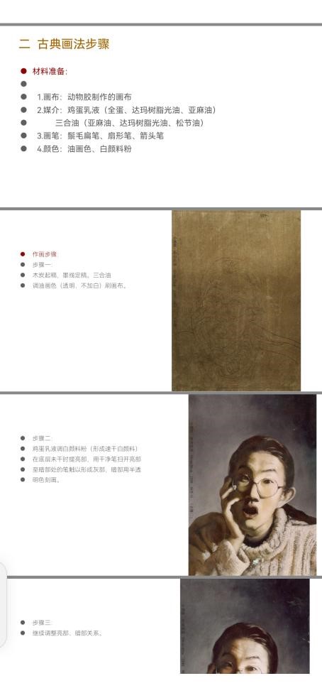 该课程根据学校疫情防控要求进行线上授课,根据教学大纲的要求首先是理论讲授通过理论讲使学生充分认识了解油画材料发展的脉络,并通过课程讲授了解传统油画的绘制方法和步骤。课程讲授主要通过以下几个方面: