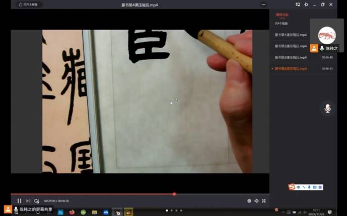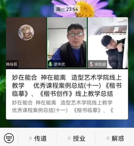 由于大部分学生在家学习,书写材料工具等有些准备不足,尤其是篆刻所用的刻石不宜购买;师生交流不方便,教师不能现场示范,在讲解书法或篆刻创作过程时存在一定的局限,学生在课堂学习中的参与度不如常规的线下课堂。