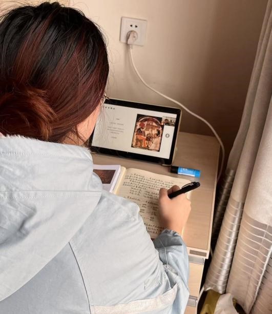 理论课结束以后,通过与学生交流,了解学生对课程的掌握情况。学生学习积极性很高,克服了各种困难,保证了最好的学习效果,学生普遍反映通过该课程的学习,对于传统油画技法有了基本的认识。并认真的做好了笔记,把课程的要点都记录下来,在课后做了认真的梳理。在听课的过程中遇到的疑惑也及时和老师沟通交流,互动效果非常好,很好的完成了课程的理论学习。