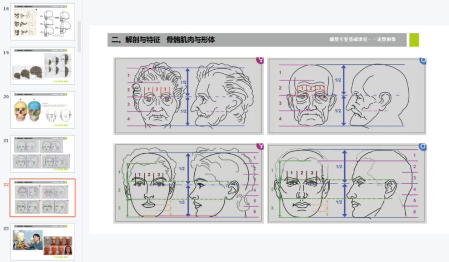 以曹淑海老师讲授的《头像速塑》课程作为范例总结如下: