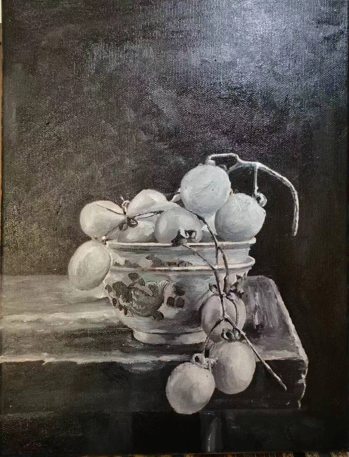 作业要求:压灰:在提白的基础上进行压灰,灰色分为三个层次:浅灰,中灰,深灰。