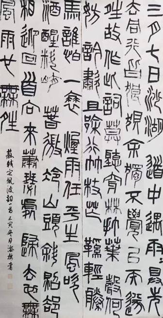 学生总体上都很好的完成了书法和篆刻的课程。书法作业呈现了多种不同艺术风貌,基本做到了遵循古人的模仿性创作,作品形式完整,章法布局饱满,都符合既定的教学目标,根据实际效果后续也要作相配套的网络课程作业展。篆刻方面,同学们在各种困难情况下,坚持临摹与创作方向一致的方法,不仅大量临摹古人印稿,并进行了许多有探索的篆刻创作尝试,作品风格从先秦古玺,到秦汉印章,最后到明清流派都有涉猎。总之,虽然线上教学存在一定困难,各位老师教学存在一定的不足,但是我们书法教研室会不断努力,刻苦钻研,争取在教学上做的更好。